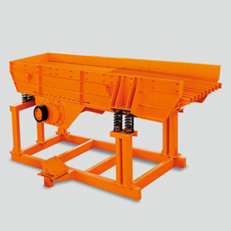 振動給料機又稱振動喂料機,是指可把塊狀、顆粒狀物料從貯料倉中均勻、定時、連續(xù)地給到受料裝置中去的一種設備。在砂石生產(chǎn)線中可為破碎機械連續(xù)均勻地喂料,節(jié)省人工,并對物料進行粗篩分,廣泛用于冶金、煤礦、選礦、建材、化工、磨料等行業(yè)的破碎、篩分聯(lián)合設備中。